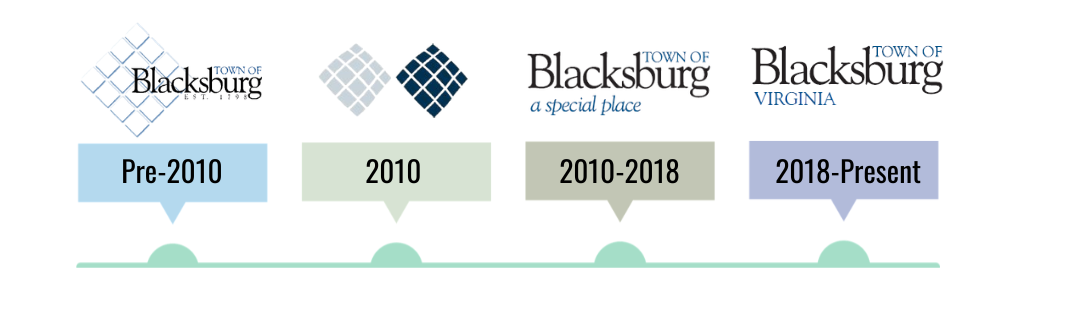 Over the past two decades, Blacksburg’s brand has evolved through several updates, while maintaining a consistent look with similar fonts, layouts, and color palettes across each version.