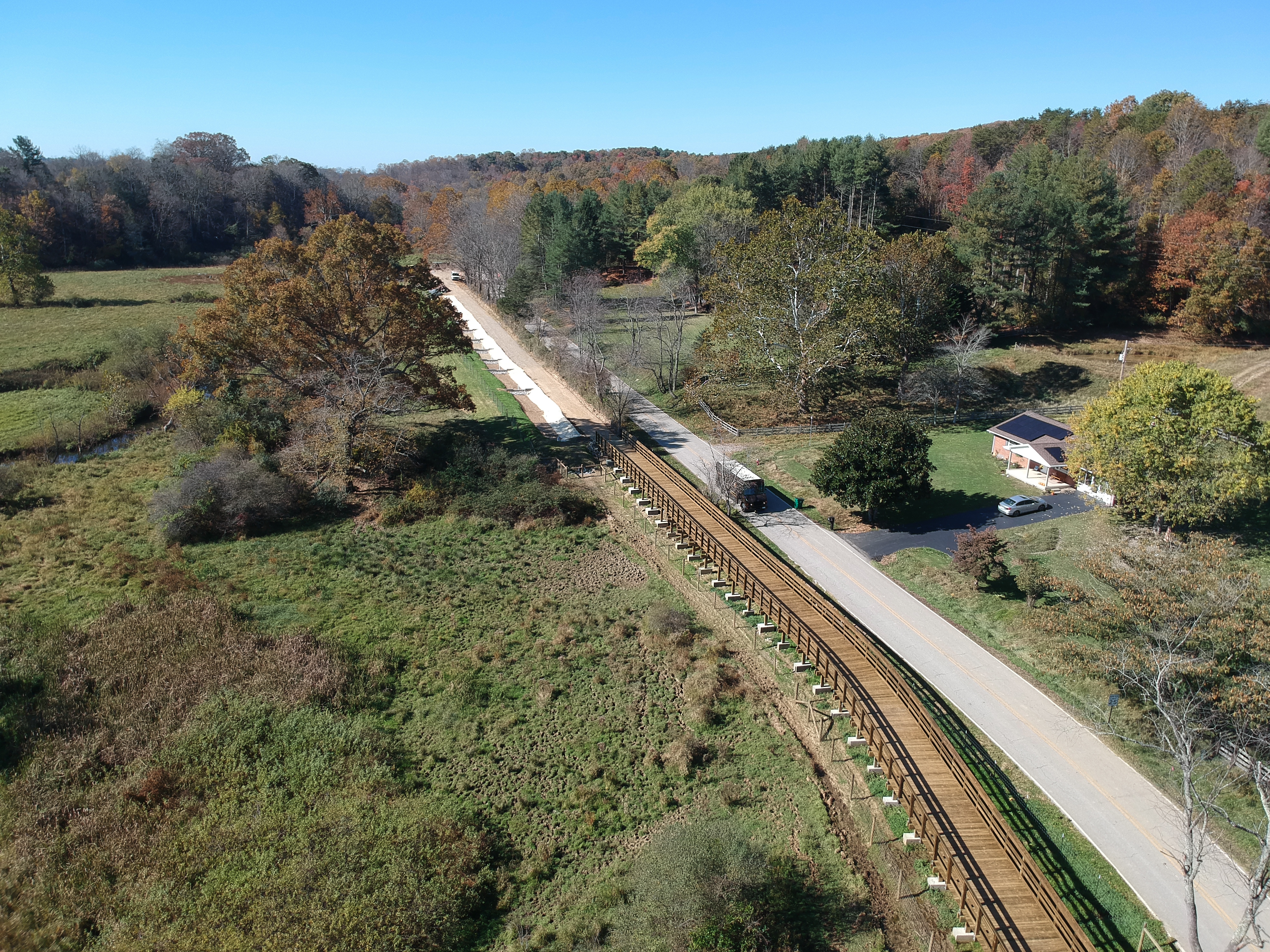 Construction of the Meadowbrook Greenway began in March 2025. The trail and boardwalk were designed by RK&K and constructed by King Construction, with funding provided through ARPA and Town resources. Two landowners granted easements to support this segment of the project.