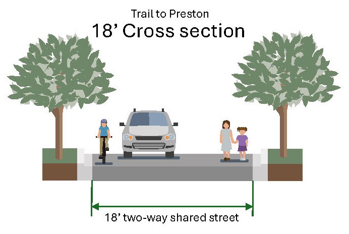 Two-way shared street markings (sharrows) from the Huckleberry Trail to Preston Avenue
