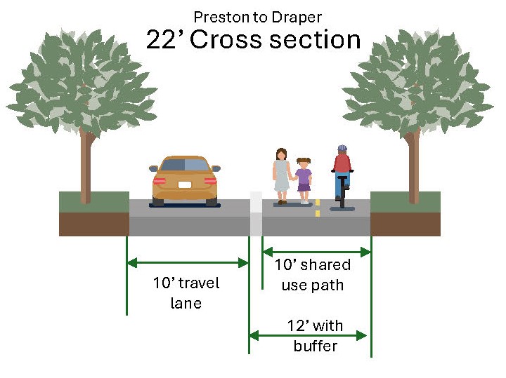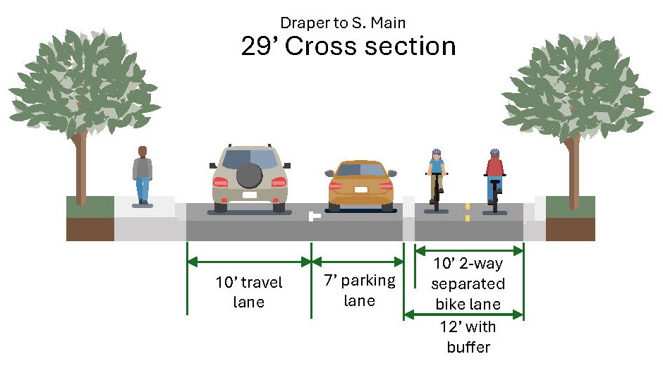 On-street parking maintained from Draper Road to Main Street and from the Huckleberry Trail to Preston Avenue